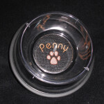 Personalize your pet's bowl ~ the perfect gift for any pet lover. 3" high, bottom diameter is 8-1/4", top diameter is 6" Clear acrylic with black center.